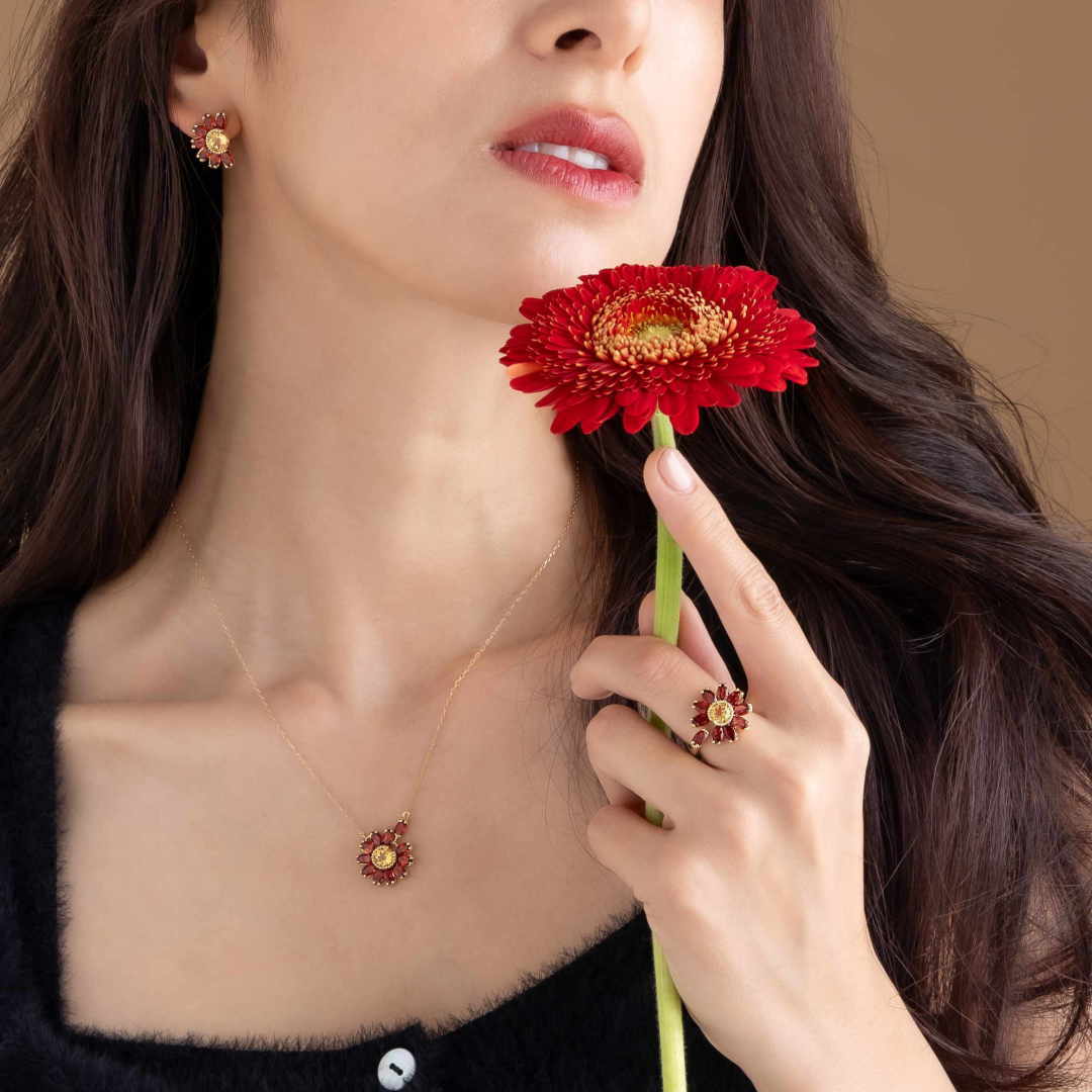 花びらには艶やかな赤のガーネットを。