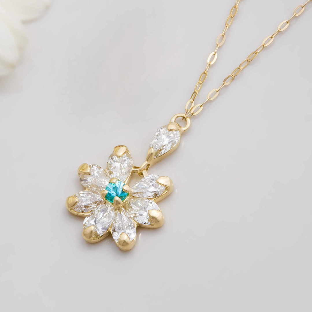 マーガレット花占いK18ネックレス|パライバトルマリン×ダイヤモンド