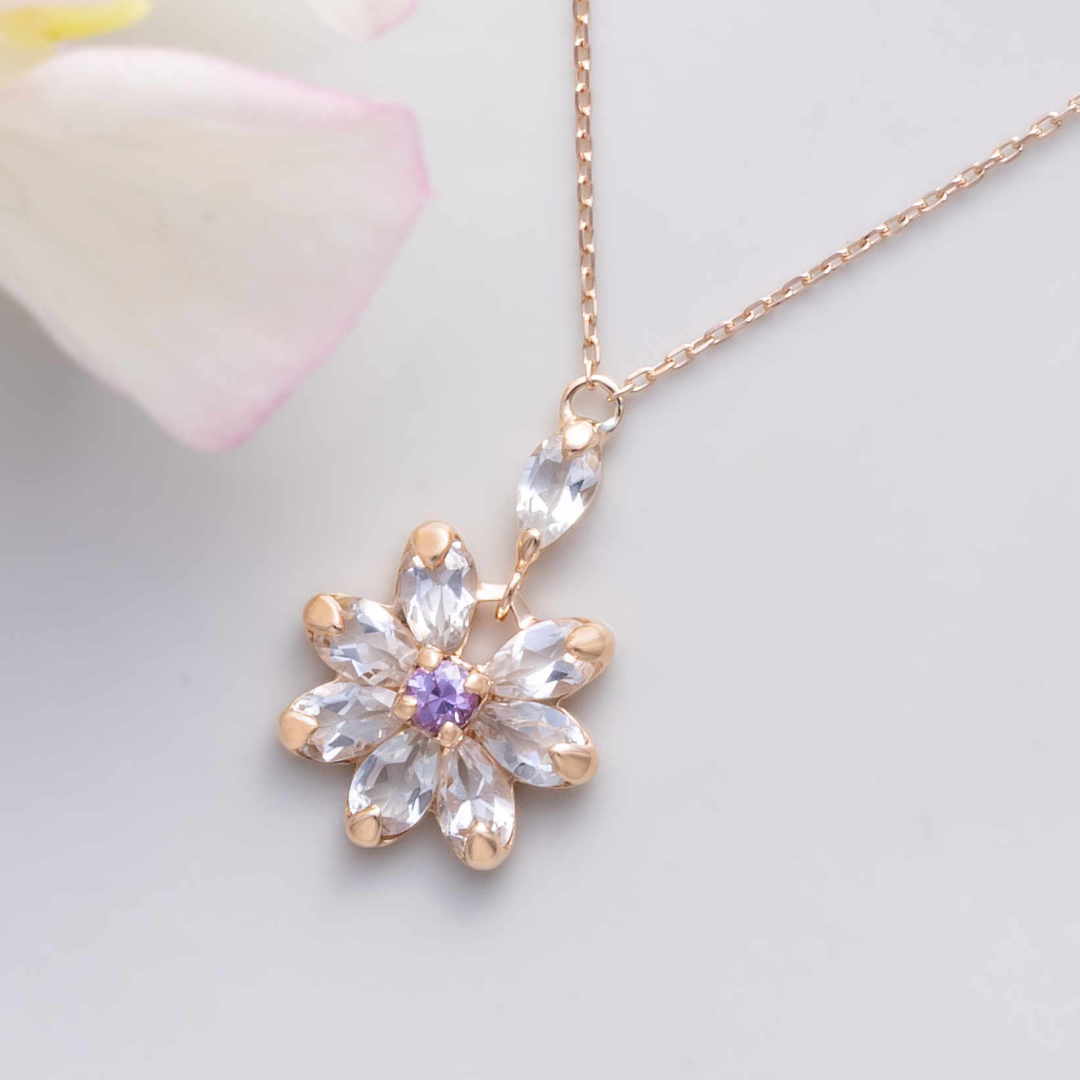 マーガレット花占いK10ネックレス|パープルサファイア×ホワイトトパーズ