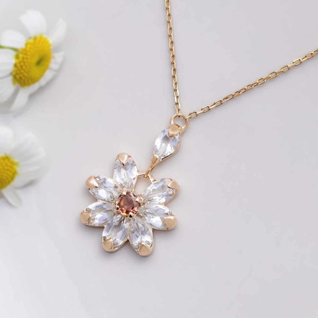 デイジーK18ネックレス|ピンクトルマリン×ホワイトトパーズ