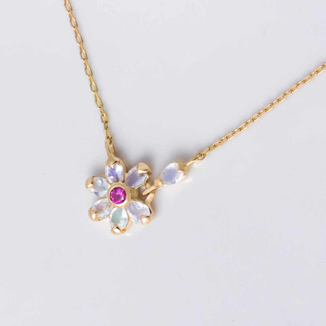 デイジーK18ネックレス|ピンクサファイア×ブルームーンストーン
