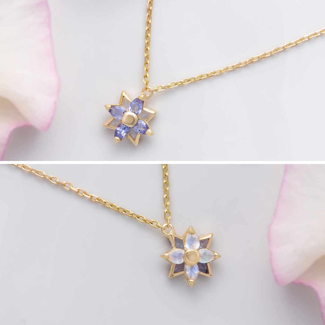 アジサイK18ネックレス|タンザナイト×ブルームーンストーン