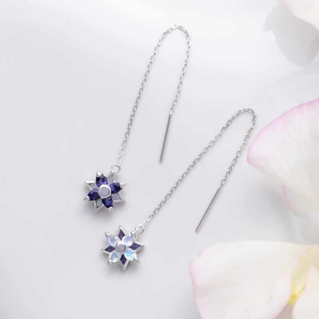 アジサイK18チェーンピアス|アイオライト×ブルームーンストーン