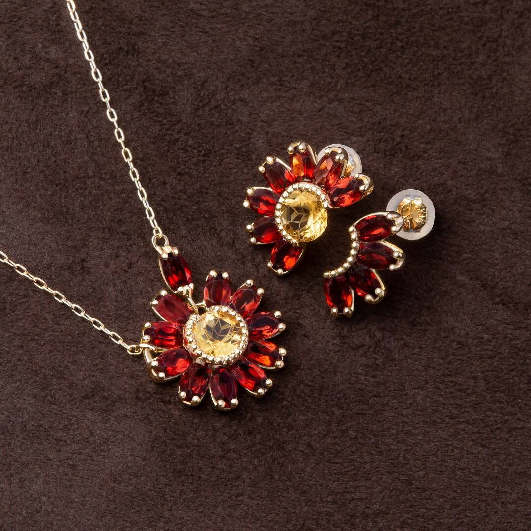Stone:ライトシトリン(ダンデライオンカット)、ガーネット