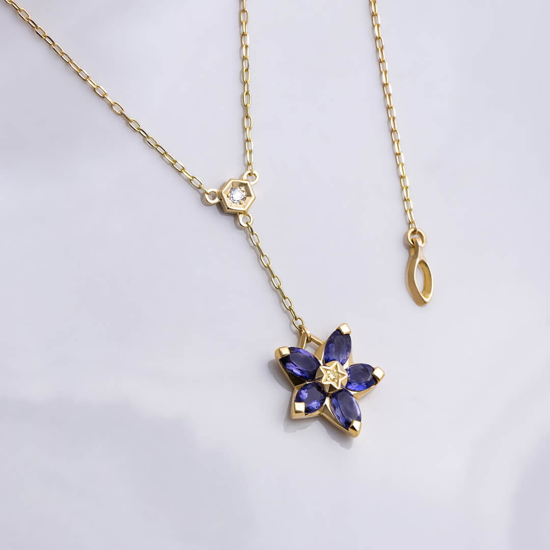 スミレ アイオライトリバーシブルY字ネックレス|3月誕生石×3月誕生花